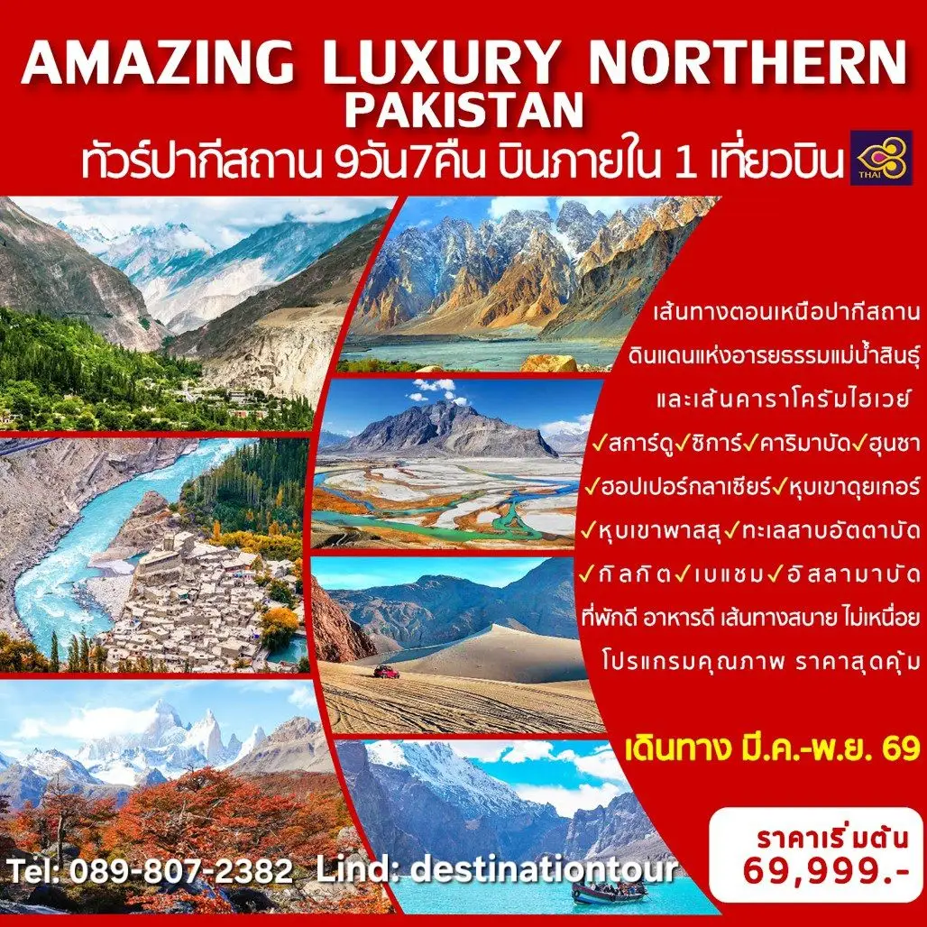 บริษัท ดรีม ดิซติเนชั่น ทัวร์ แอนด์ ทราเวล จำกัด ให้บริการ ทัวร์ปากีสถาน จัดนำเที่ยวปากีสถาน ราคาถูก ปากีสถานเป็นประเทศที่มีการผสมผสานระหว่างวัฒนธรรมที่หลากหลาย ธรรมชาติที่งดงาม หลากหลายทางภูมิศาสตร์ เทือกเขาที่สูงตระหง่าน ไปจนถึงหุบเขาและทะเลทราย ประวัติศาสตร์และวัฒนธรรมที่ลึกซึ้ง รวมถึงแหล่งท่องเที่ยวที่มีชื่อเสียง เราเชื่อว่าการเดินทางไม่ใช่แค่การเคลื่อนที่จากที่หนึ่งไปยังอีกที่หนึ่ง แต่เป็นการสร้างประสบการณ์ใหม่ๆ ที่ทำให้คุณเติบโต เปิดมุมมองใหม่ๆ และทำให้ชีวิตมีความหมายมากยิ่งขึ้น…